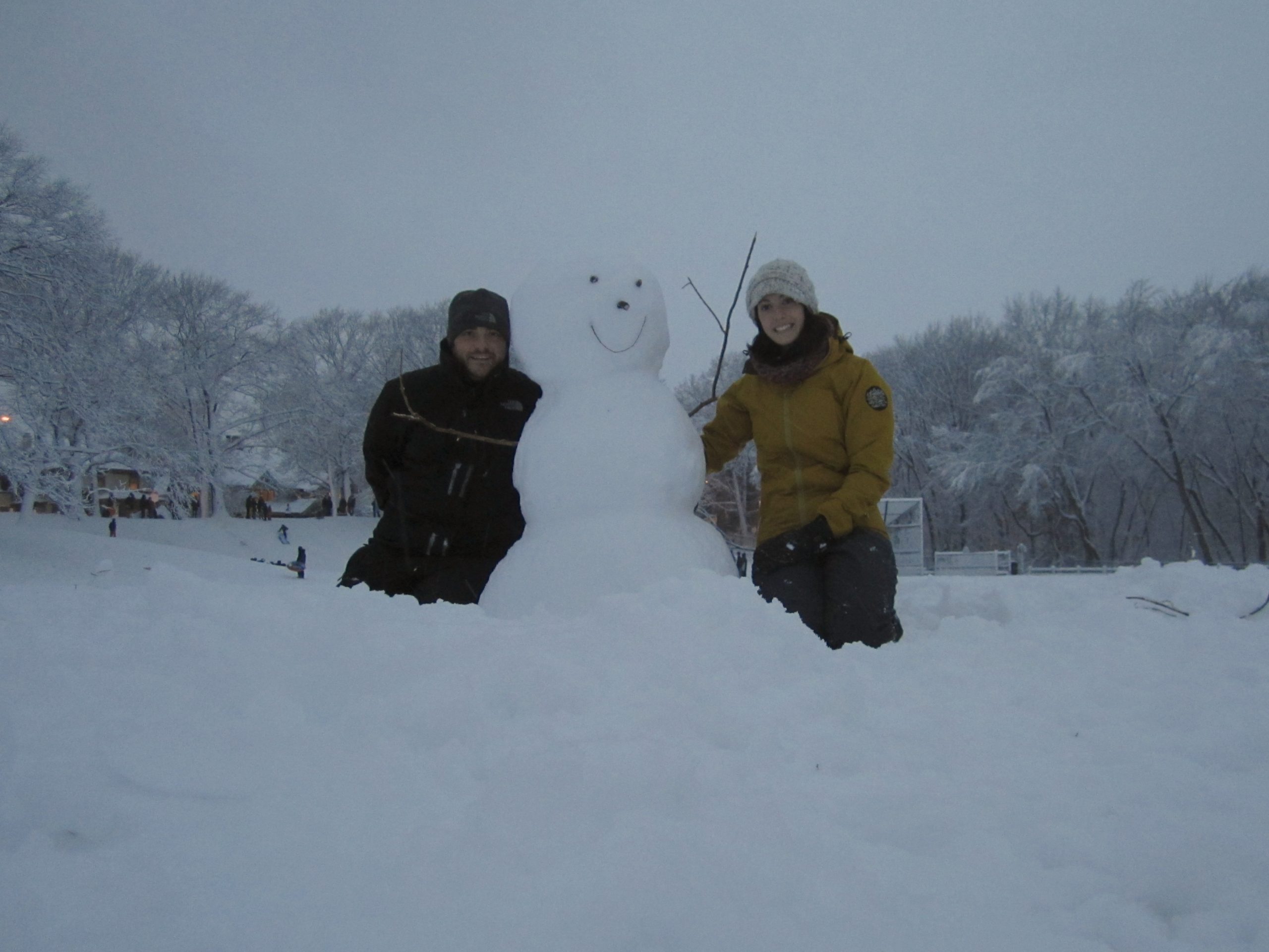 At first, I thought for sure this was going to be perfect snowman snow. But as I tried unsuccessfully to pack it into a ball and then roll it to make it bigger and bigger, I realized that only the first layer of snow was good packing snow. So, we cleared out the top layer and dug down to the bottom stuff! A little fluffy powder wasn’t going to get in the way of making this snowman friend.