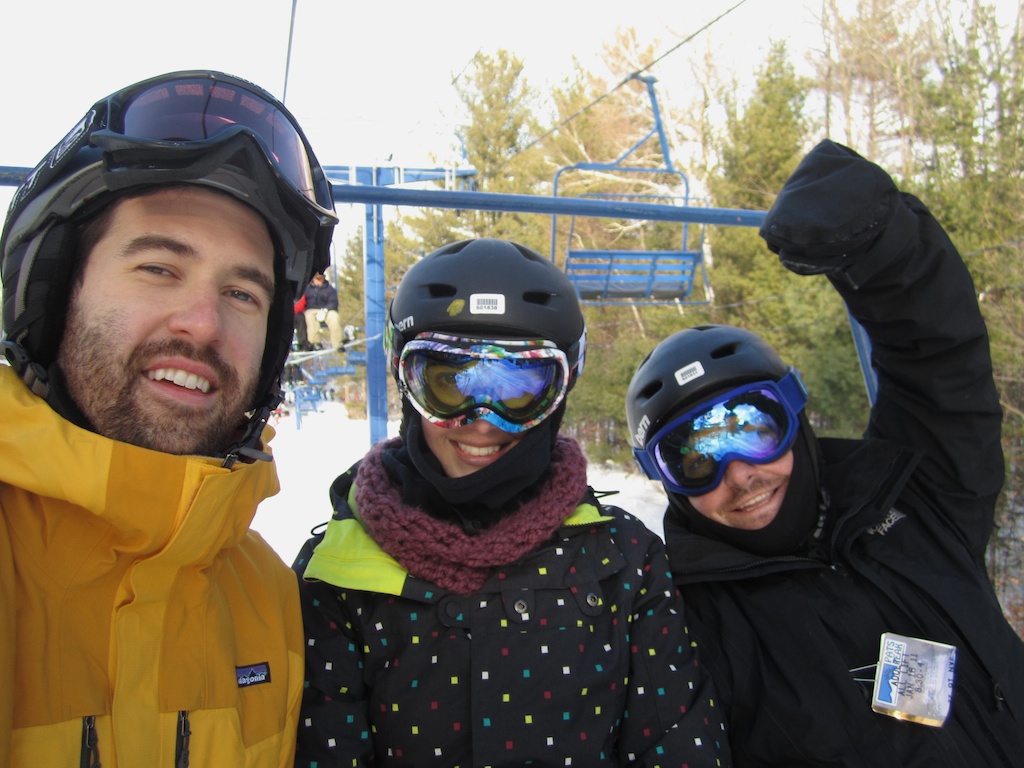 Yesterday we met several of our friends at Pat’s Peak in New Hampshire for a day of snow-filled fun. I spent the morning snowboarding with Ryan and then finally decided that maybe it wasn’t for me. I traded in my board for some trusty skis and hit the slopes again. It wasn’t that I didn’t like snowboarding, I really did. It’s definitely hard and the falling is more frequent and more painful but it seems way more social. You always see 2 or 3 snowboarders half way down the mountain just sitting and talking, I liked that about it. But I liked being able to keep up with the group much more. Being able to stay with all of my friends and not feel like I was holding them back was worth it. Oh, and I didn’t have to stay on the same boring green trail all day long!