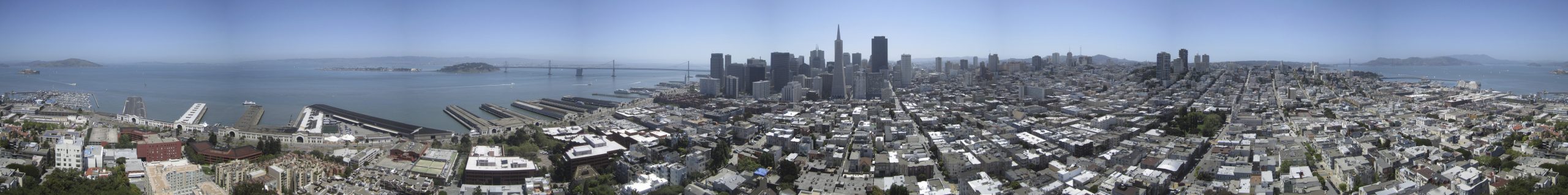 The top of Telegraph Hill has a pretty serious view. I did my best to line up photos all the way around the tower and put them all together panorama style.