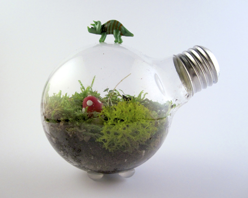 My brother recently wrote about his hobbies on his blog, how he starts something one day and almost immediately loses interest and moves onto something new. As I was working on this terrarium post, I kind of started to think maybe I do the same thing. I blame it on the fact that I have unbelievably creative friends. I think Todd had the terrarium idea, Ryan had the lightbulb idea, I wanted to make something out of clay to put in mine and Kat documented the finished product. So now we all have terrariums. It may not be a long lasting hobby–but for now, they are adorable and I love them.
